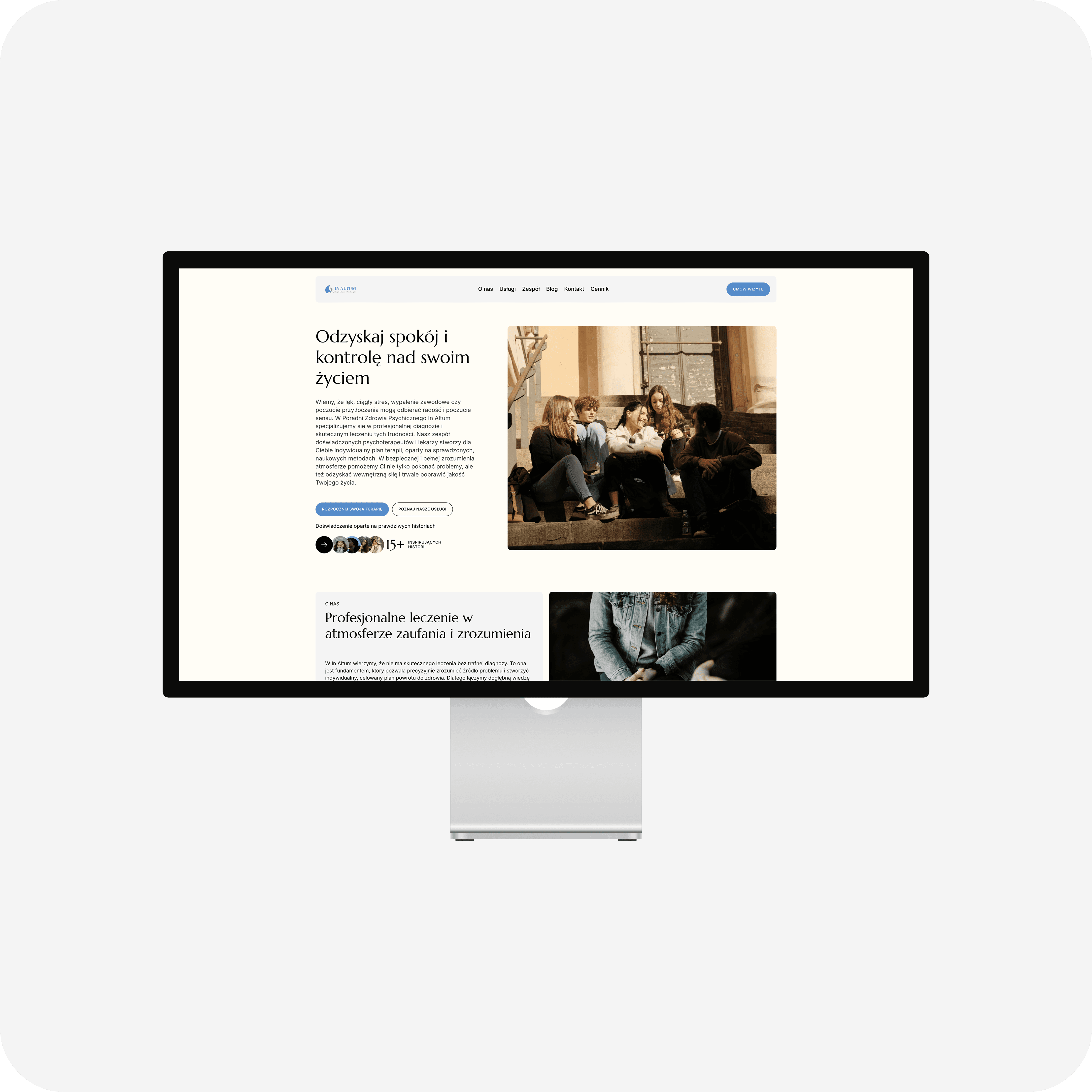Rynek usług medycznych i psychologicznych w Warszawie i Krakowie jest nasycony generycznymi ofertami. Klient potrzebował wyrazistego wizerunku i skutecznego systemu pozyskiwania pacjentów, który buduje zaufanie od pierwszego kliknięcia.