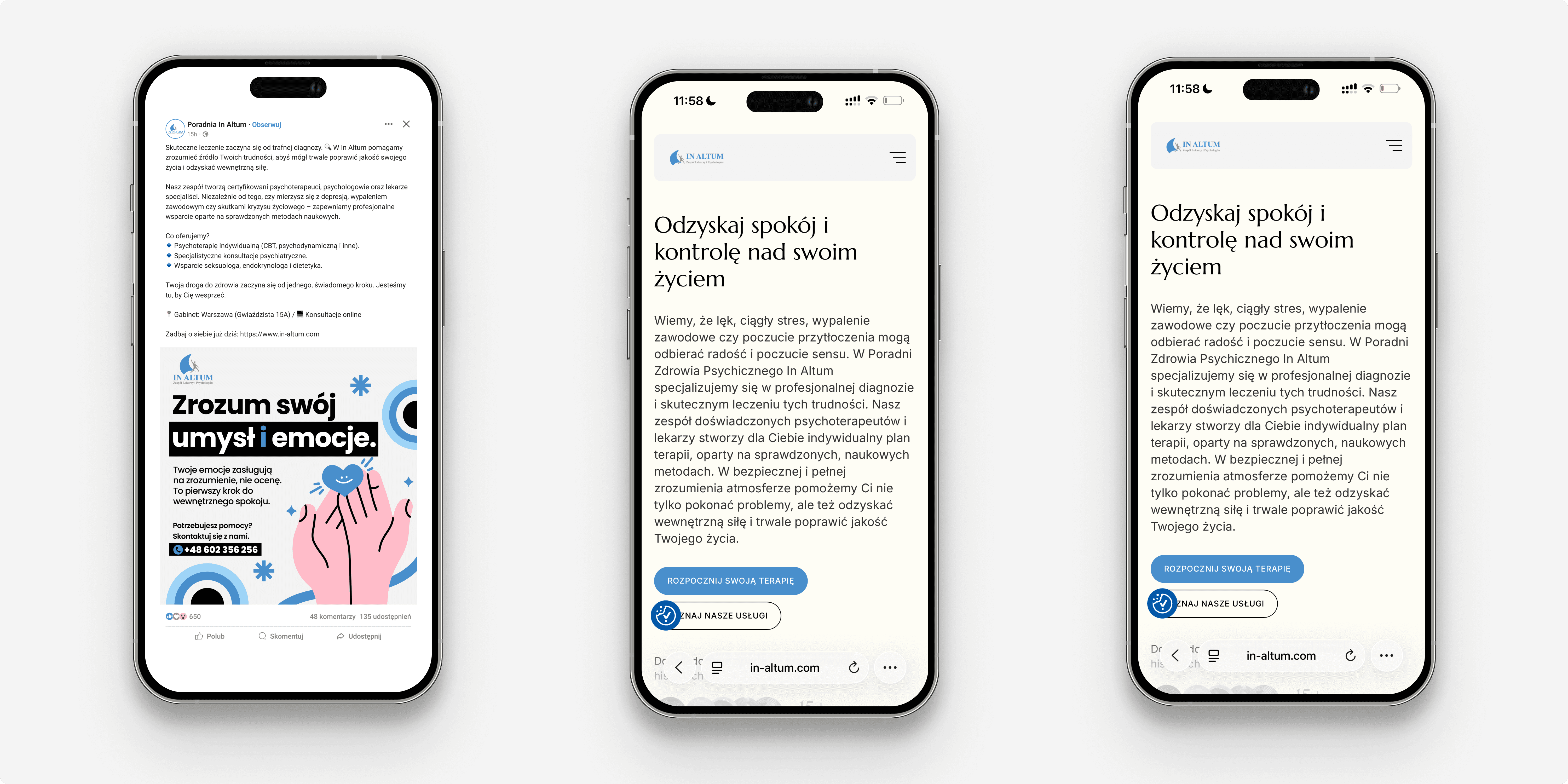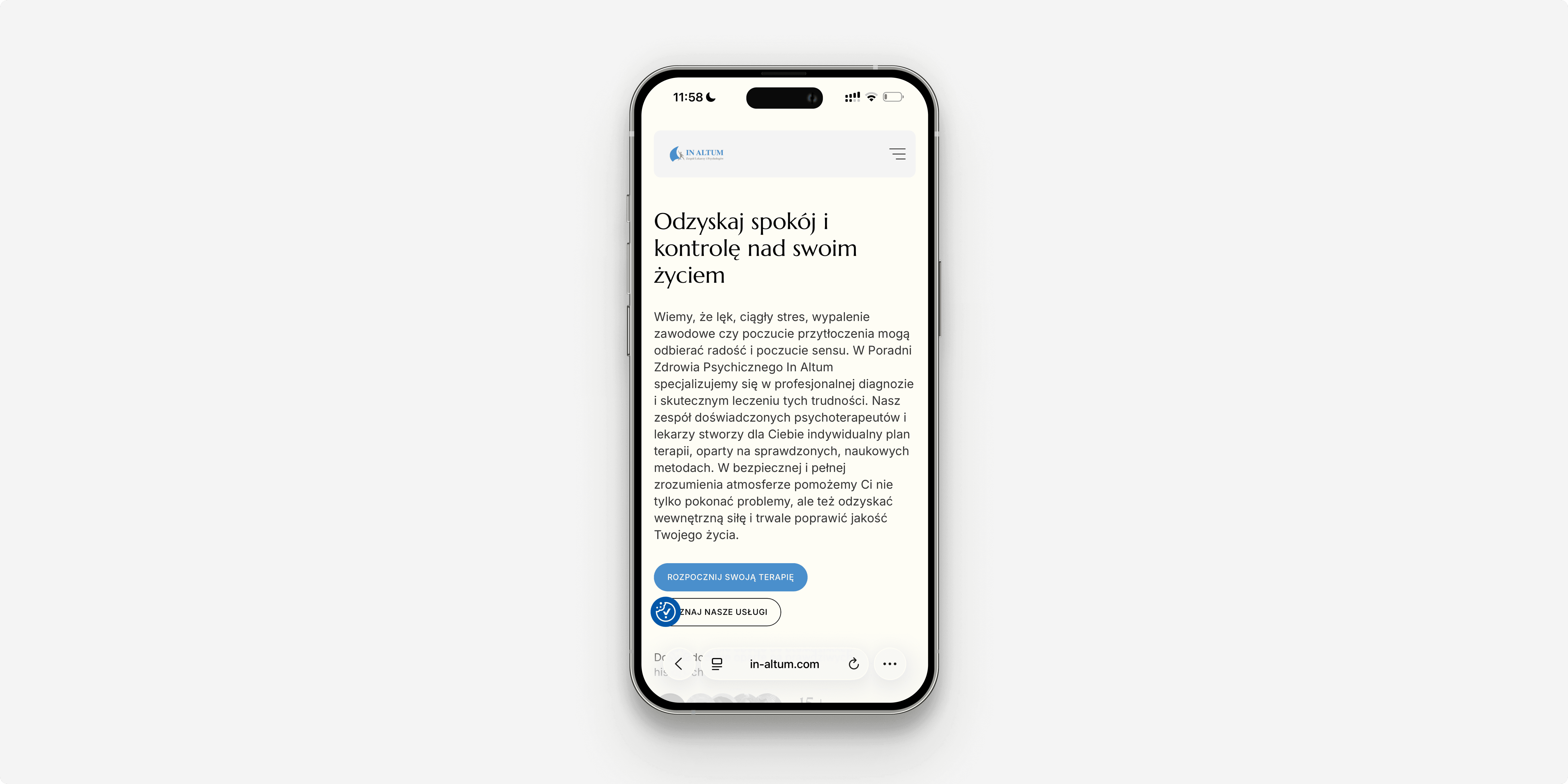 W konkurencyjnym sektorze wizyt domowych i psychoterapii, tradycyjne metody dotarcia przestawały wystarczać. Marka In Altum potrzebowała przejścia z „lokalnego gabinetu” na poziom profesjonalnej placówki medycznej, która dominuje w wynikach wyszukiwania i przyciąga pacjentów autentycznym contentem wideo.